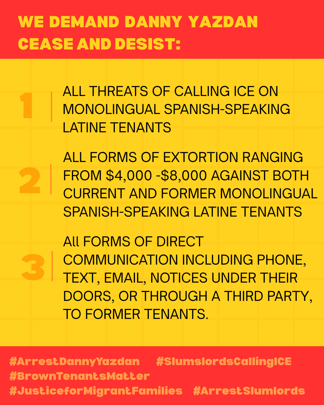 #ArrestDannyYazdan #SlumslordsCallingICE #BrownTenantsMatter #JusticeforMigrantFamilies #ArrestSlumlords